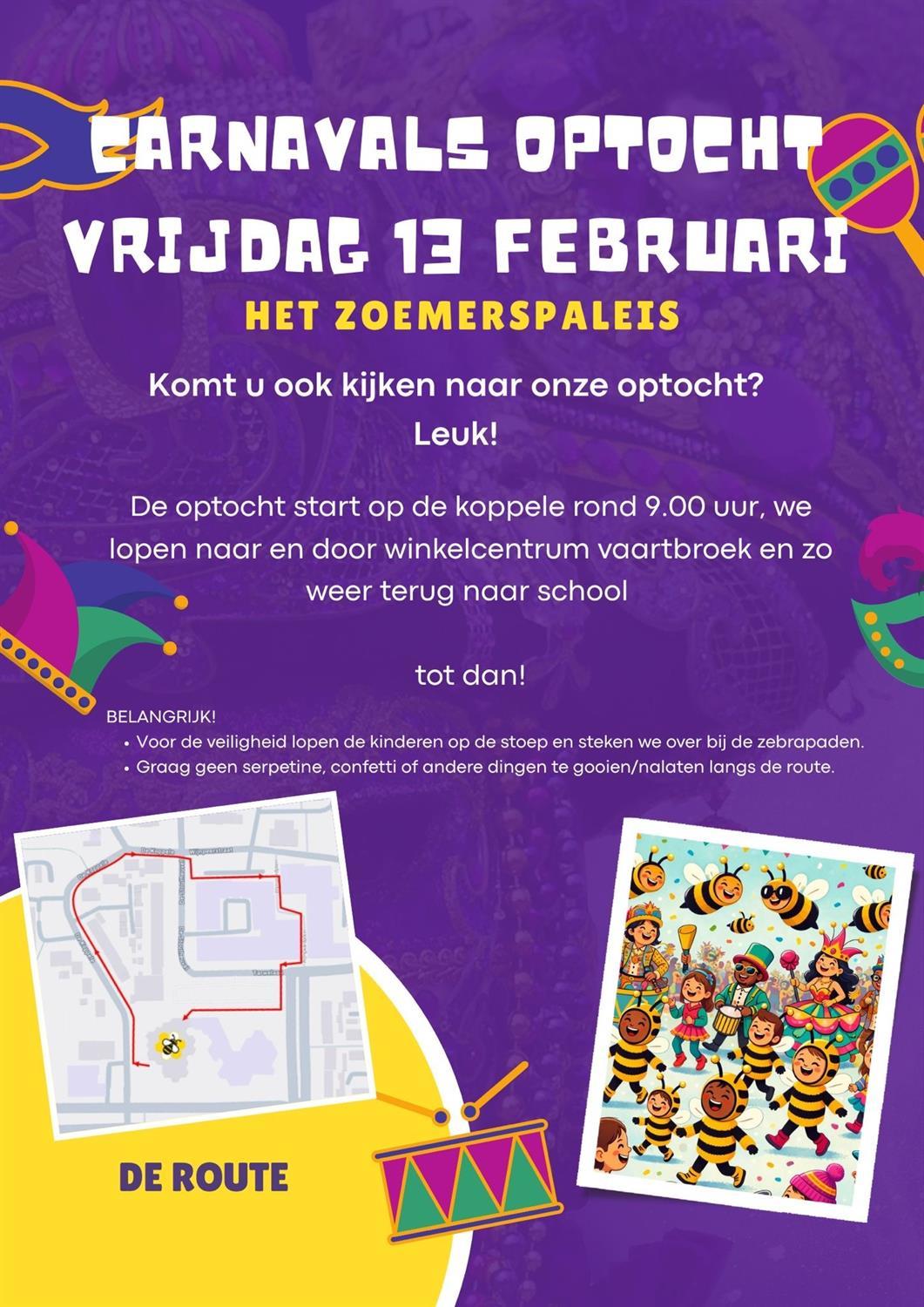 Alaaaaf! Het is bijna carnaval en dat vieren we op vrijdag 13 februari gezellig samen op school. Carnaval is een feest vol verkleedkleren, muziek, lachen en plezier. Iedereen mag even iemand anders zijn – hoe leuk is dat?! ðŸĪĄðŸ‘‘ðŸĶļ‍♀ïļ